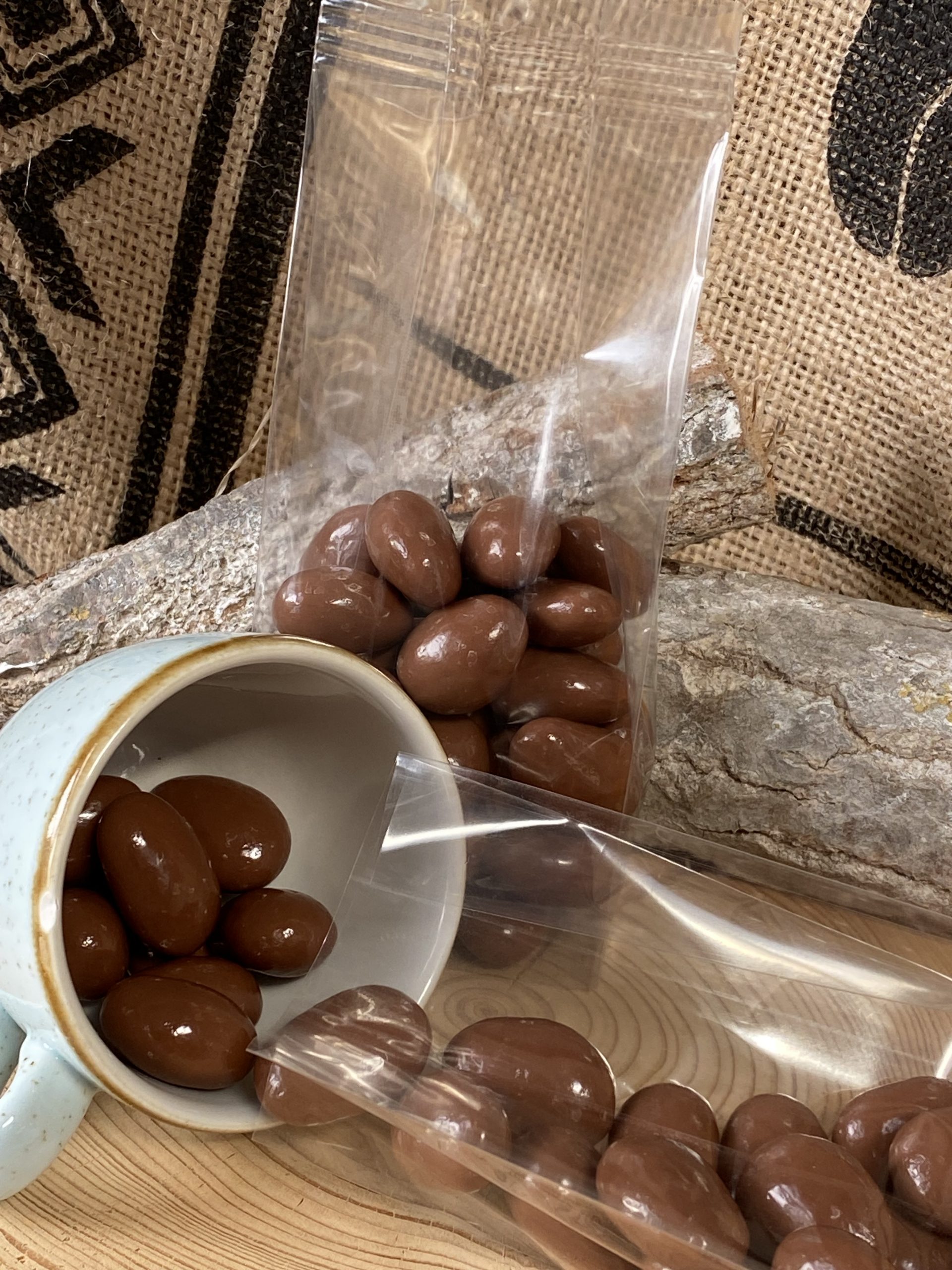 Mandeln mit Vollmilchschokolade (35%) überzogen