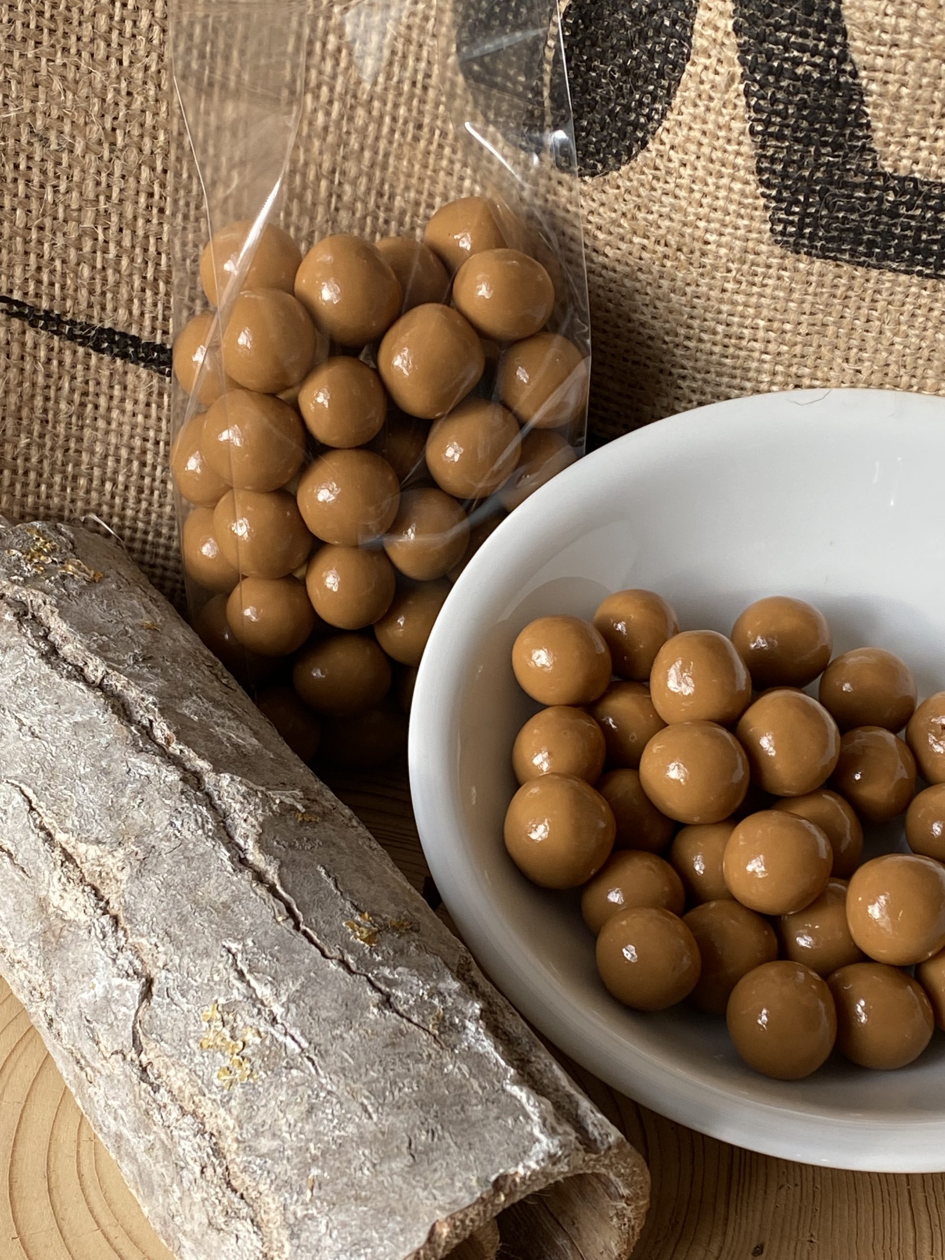 Gemalztes knuspriges Getreide mit weißer Schokolade (35%) überzogen